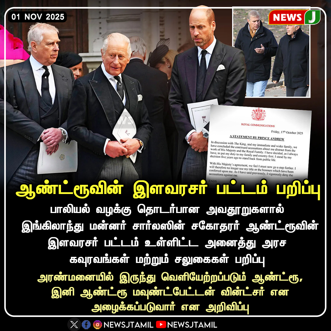 ஆண்ட்ரூவின் இளவரசர் பட்டம் பறிப்பு | Prince Andrew Stripped of Royal Titles