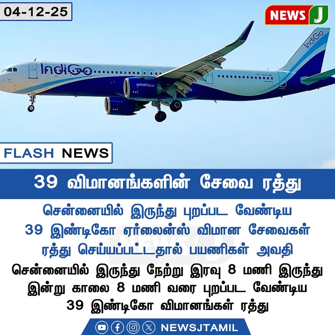 39 விமானங்களின் சேவை ரத்து | 39 Flights Cancelled