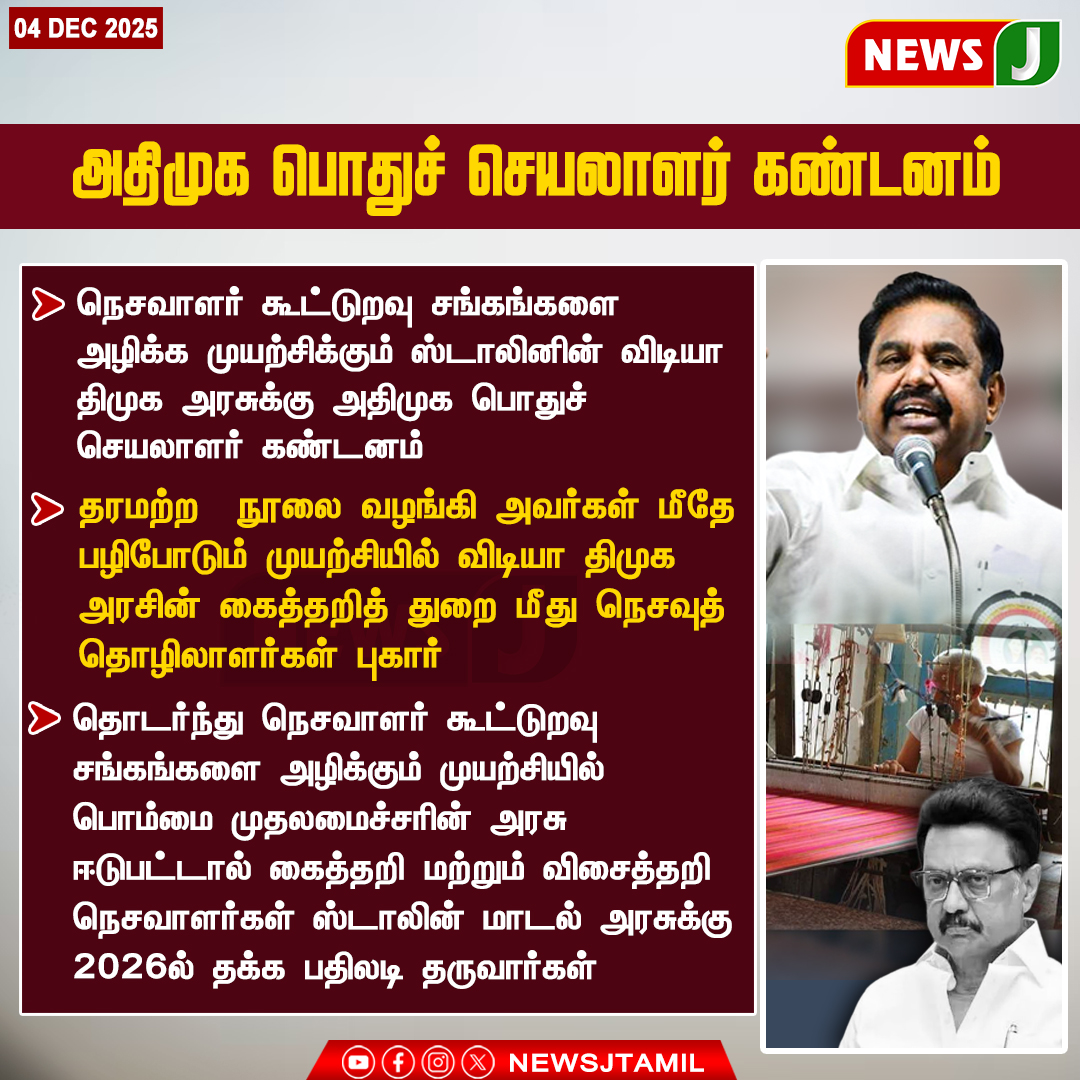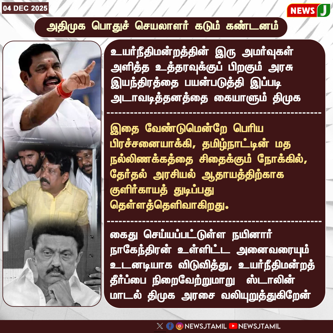 அதிமுக பொதுச் செயலாளர் கண்டனம் | AIADMK General Secretary Condemns