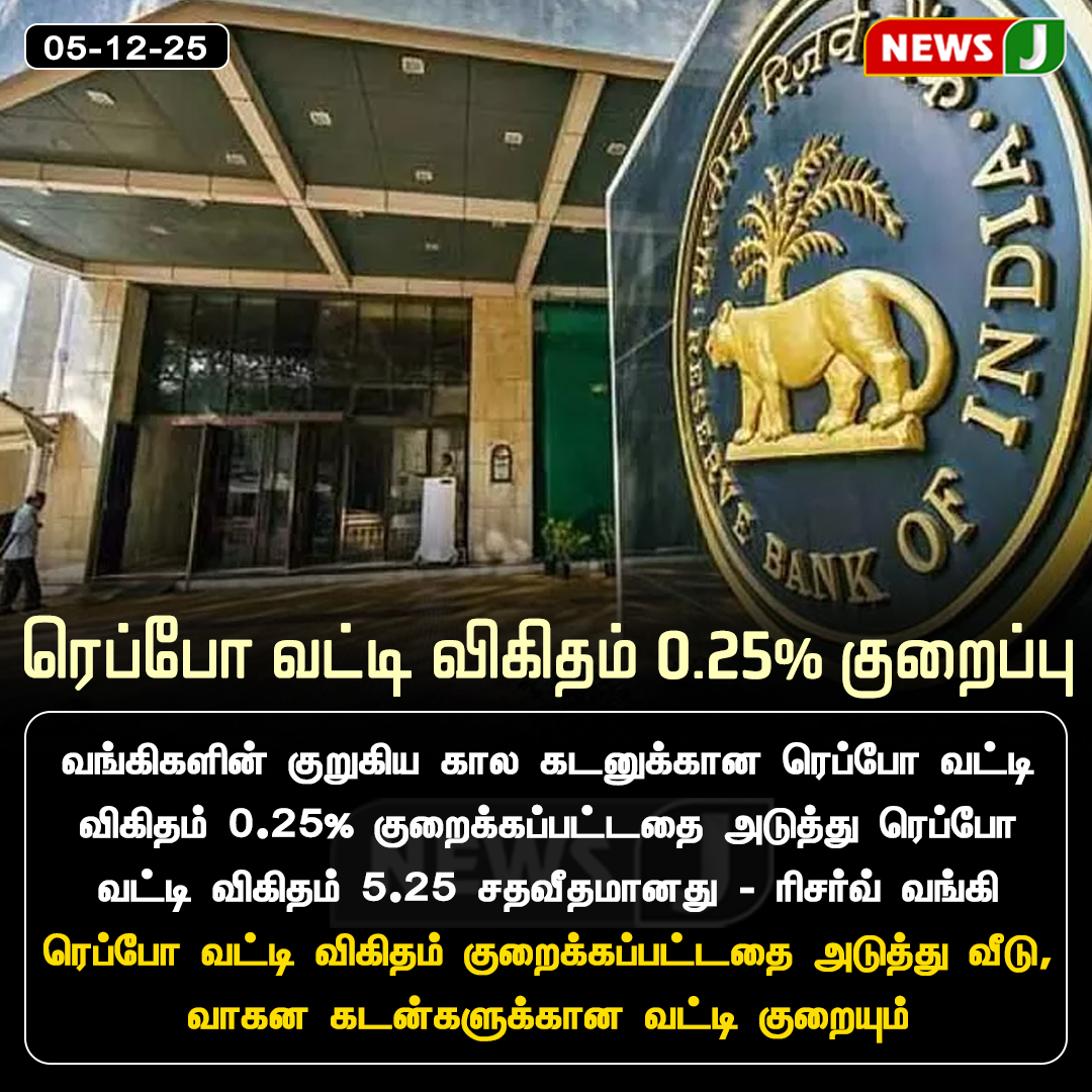 ரெப்போ வட்டி விகிதம் 0.25% குறைப்பு | Repo Rate Cut...