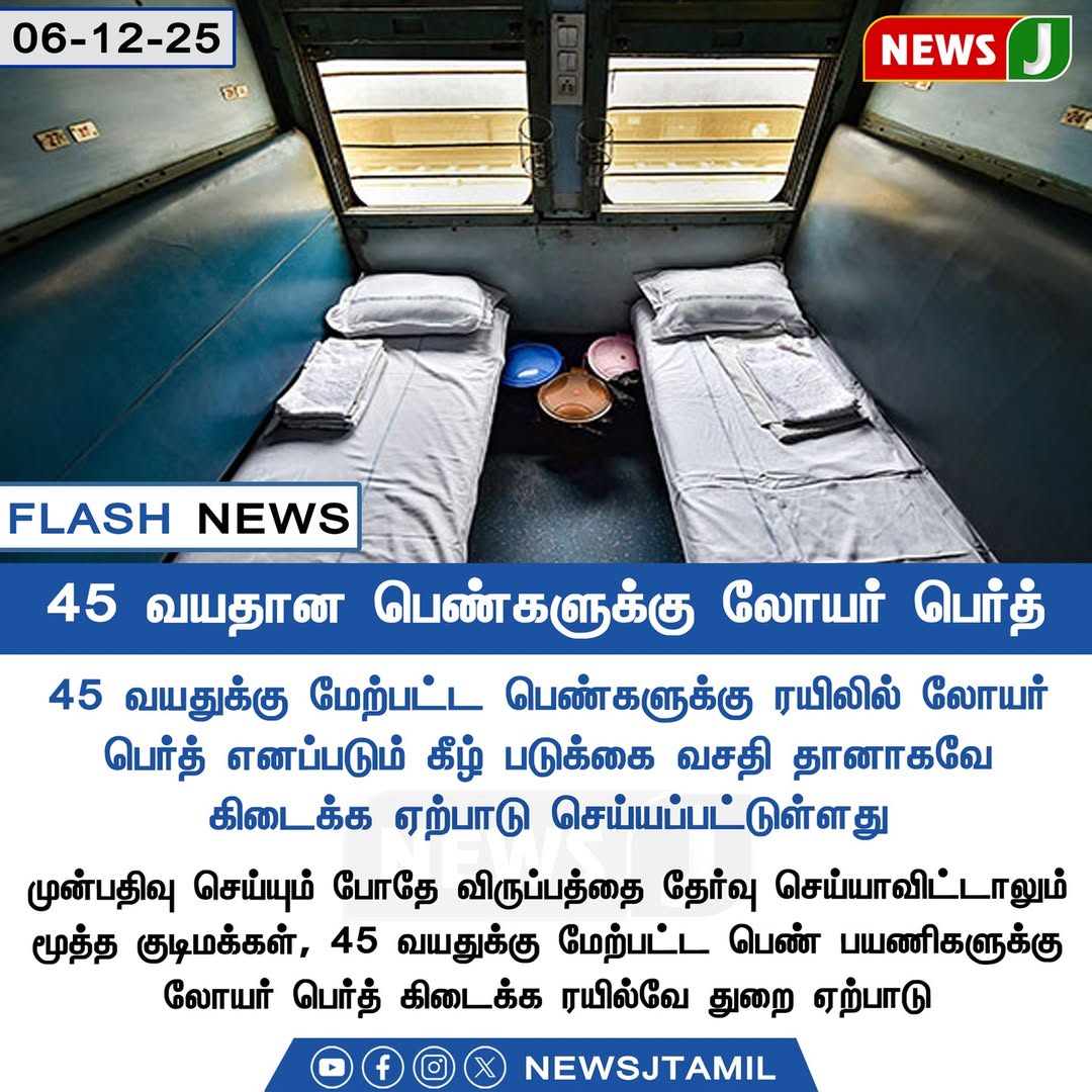 45 வயதான பெண்களுக்கு ரயிலில் லோயர் பெர்த் | Lower berth...