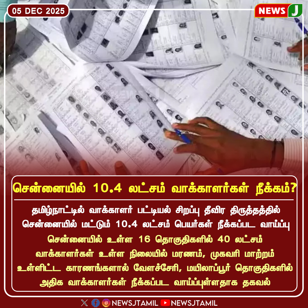 சென்னையில் 10.4 லட்சம் வாக்காளர்கள் நீக்கம்? | 10.4 Lakh Voters...