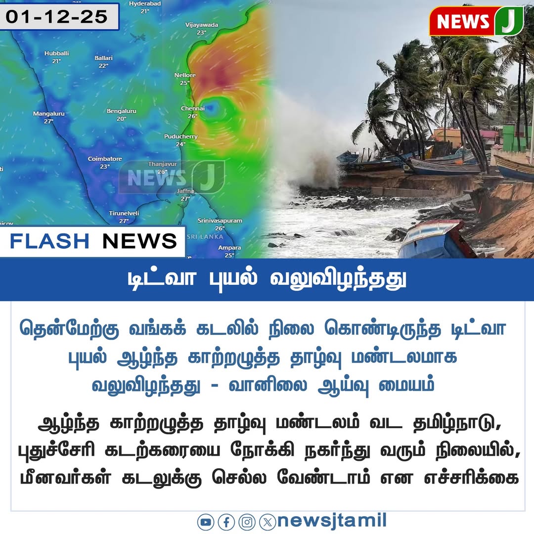 டிசம்பர் தொடக்கத்தில் வங்கக்கடல் பகுதியில் குறைந்த காற்றழுத்த தாழ்வு உருவாகும் சாத்தியம் உள்ளதாக வானிலை ஆய்வு மையம் தெரிவித்துள்ளது. இந்த தாழ்வு நிலை தமிழக கடற்கரை பகுதிகளின்...