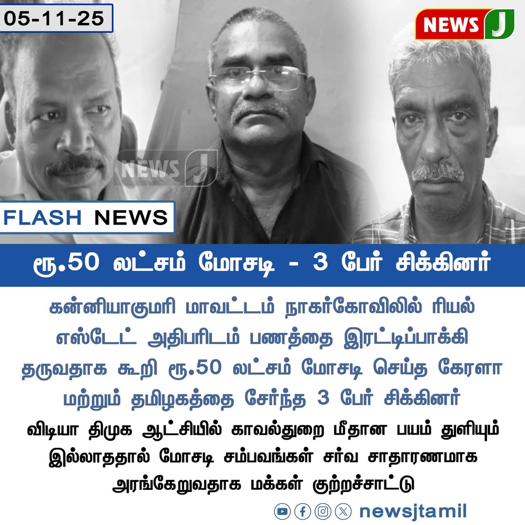 கன்னியாகுமரி மாவட்டம் நாகர்கோவிலில் ஏற்பட்ட பண மோசடி வழக்கில் மூவர் கைது செய்யப்பட்டனர் | Three individuals have been arrested in Nagercoil, Kanyakumari district,...