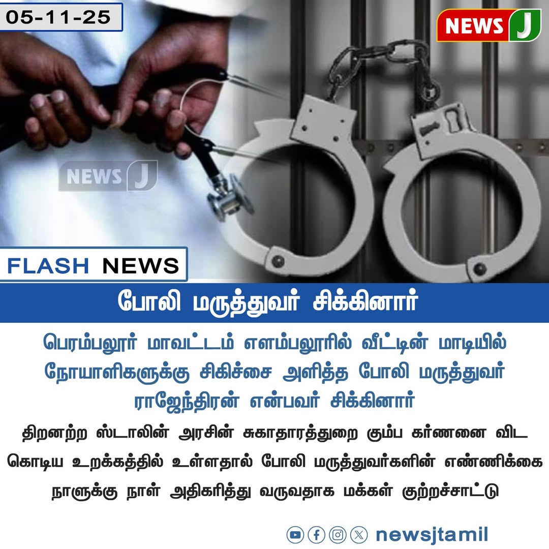 பெரம்பலூர் மாவட்டம் எளம்பலூரில் போலி மருத்துவர் கைது செய்யப்பட்டார் | A fake doctor has been arrested in Elambalur, Perambalur district, for allegedly...