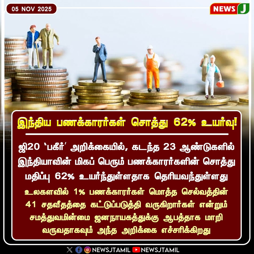 ஜி20 அறிக்கையில், கடந்த 23 ஆண்டுகளில் இந்திய பணக்காரர்களின் சொத்து 62% அதிகரித்துள்ளதாக தெரிவிக்கப்பட்டுள்ளது | A recent G20 report reveals that the wealth...
