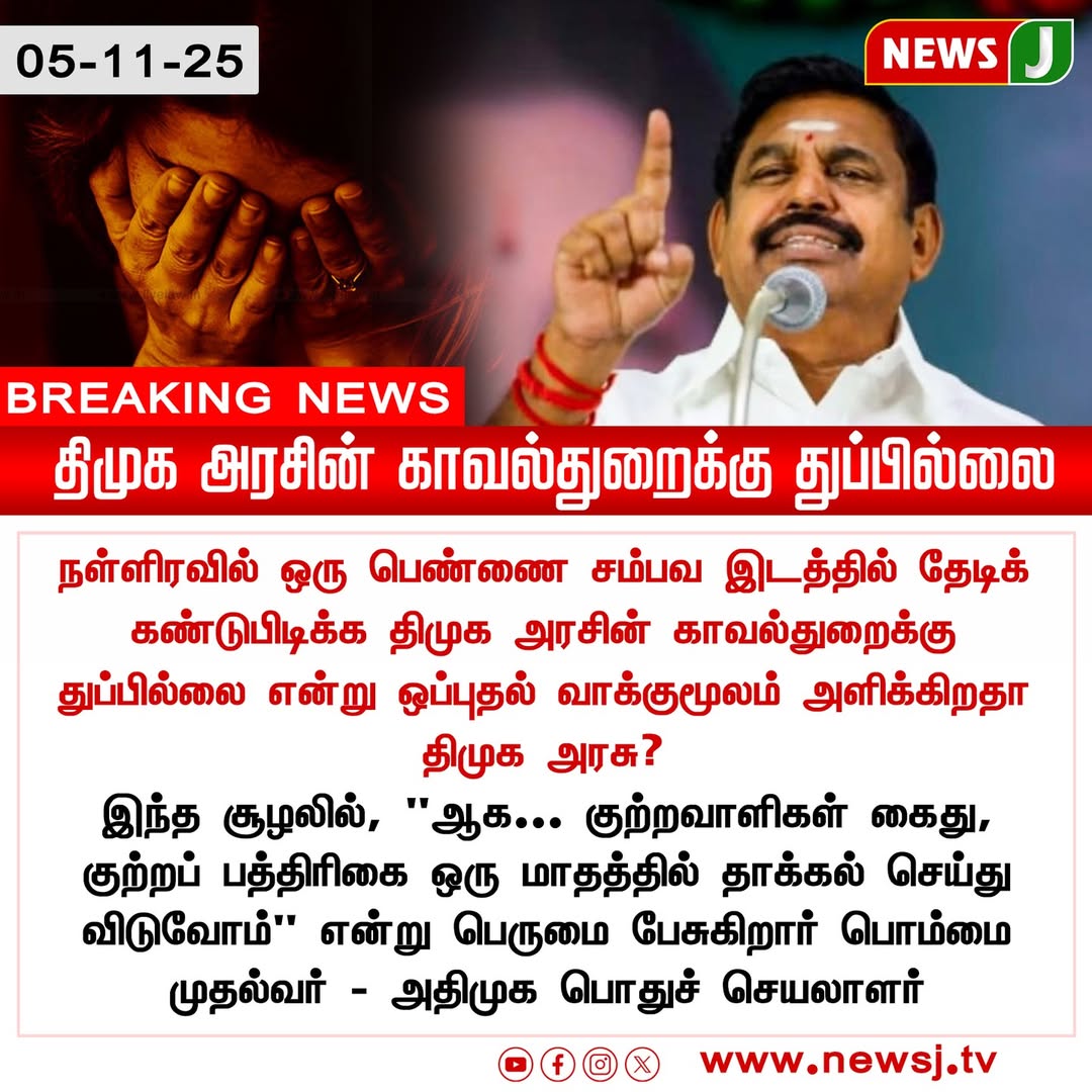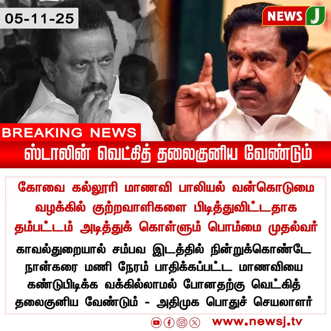 கோவை கல்லூரி மாணவி வன்முறை வழக்கில் குற்றவாளிகள் கைது செய்யப்பட்டதை தொடர்ந்து அரசை கடுமையாக விமர்சித்தார் அதிமுக தலைவர் | AIADMK leader slammed the government...
