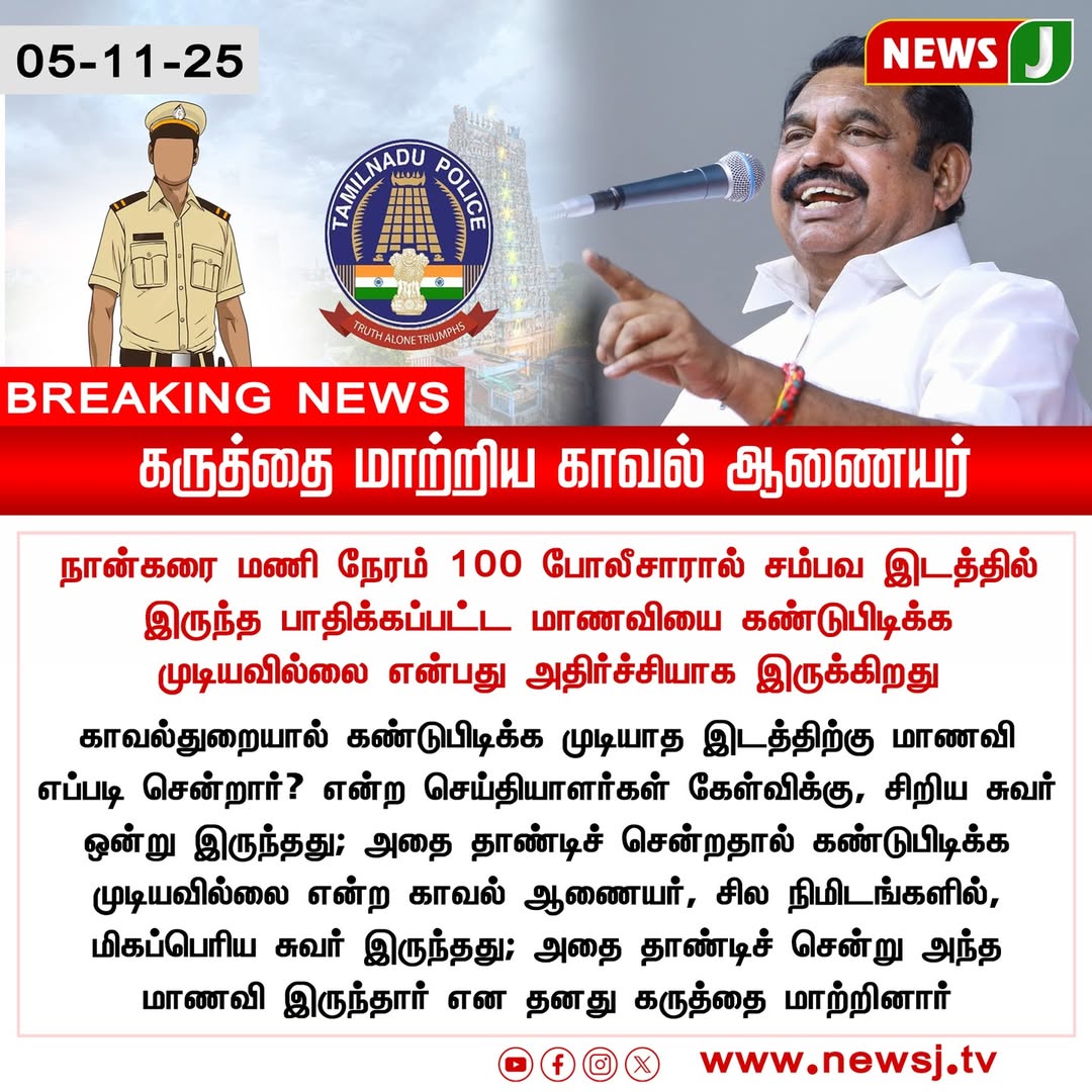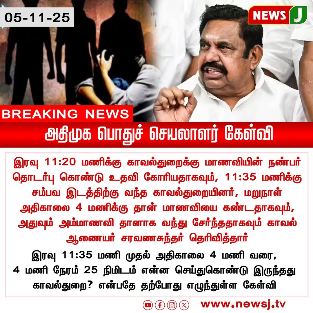 கோவை மாணவி வழக்கில் காவல் துறையின் தாமதமான நடவடிக்கையை அதிமுக பொதுச் செயலாளர் எடப்பாடி பழனிசாமி கேள்வி எழுப்பினார் | AIADMK General Secretary Edappadi K....