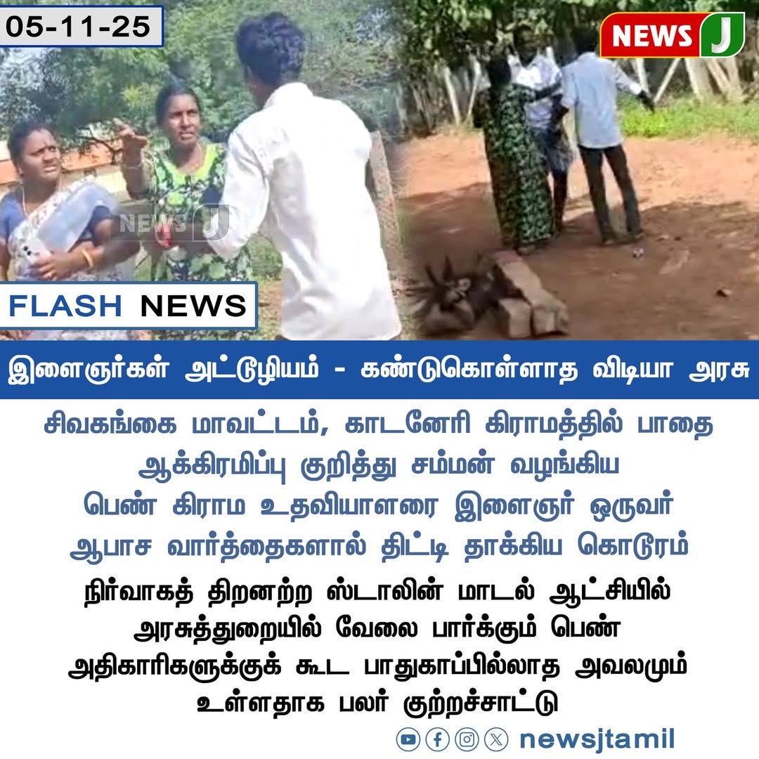 சிவகங்கை மாவட்டம் காட்டநேரி கிராமத்தில் பாதை ஆக்ரமிப்பு குறித்த சச்சரவில், பெண்கிராம உதவியாளரை இளைஞர்கள் தாக்கிய சம்பவம் அதிர்ச்சியை ஏற்படுத்தியுள்ளது. | In Kattaneri village, Sivagangai...