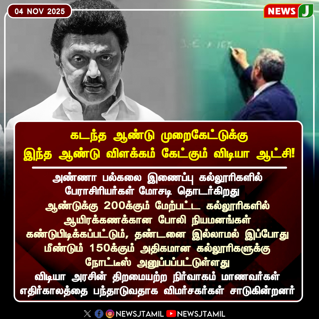 கடந்த ஆண்டு முறைகேட்டுக்கு இந்த ஆண்டு விளக்கம் கேட்கும் விடியா ஆட்சி! |...