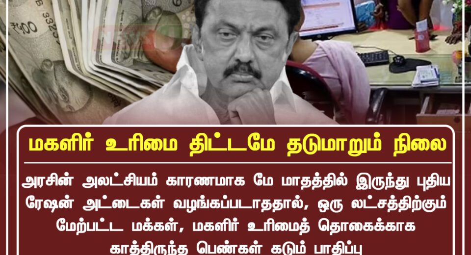 மே மாதத்தில் இருந்து தொடங்க வேண்டிய புதிய ரேஷன் அட்டை வழங்கும் நடைமுறை தாமதமானதால், ஒரே மாதச் சிக்கலில் மகளிர் உரிமை திட்டப் பயனாளிகள் பெரும் பாதிப்பில் உள்ளனர்.