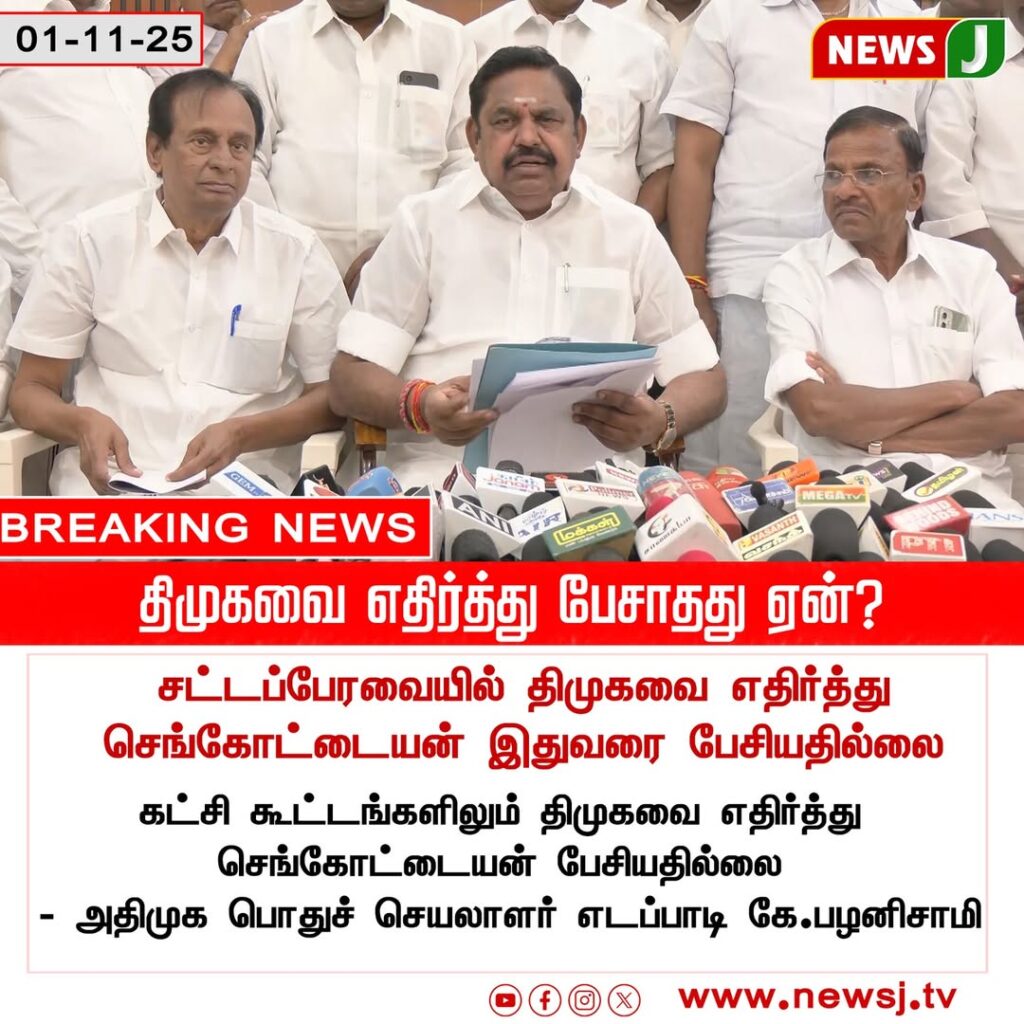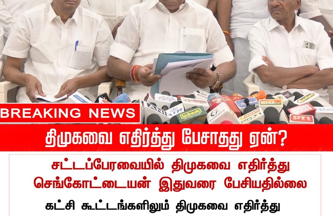AIADMK General Secretary Edappadi K. Palaniswami questioned why senior leader Sengottaiyan had not spoken out against the DMK either in the Assembly or within party forums. EPS stated that as a responsible opposition, AIADMK leaders must call out the government’s failures — not remain silent.