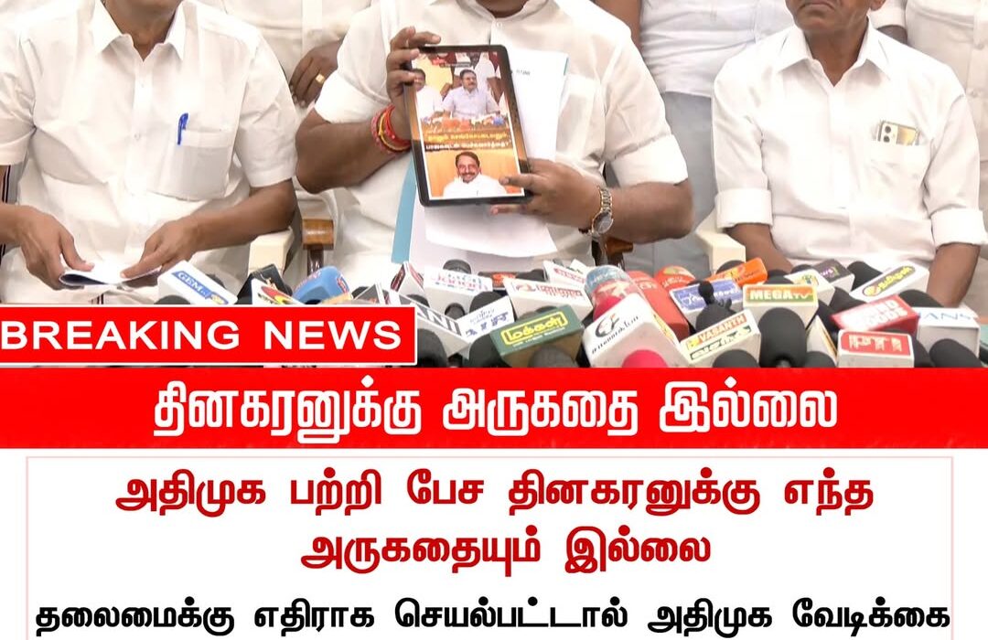 அதிமுக பொதுச் செயலாளர் எடப்பாடி கே. பழனிசாமி, “தினகரனுக்கு அதிமுக குறித்து பேச எந்த உரிமையும் இல்லை” என்று கடுமையாக தெரிவித்தார். அவர் கட்சியிலிருந்து நீக்கப்பட்டபின், அதிமுகவுடன் எந்த தொடர்பும் இல்லை என்பதையும் நினைவுபடுத்தினார்.