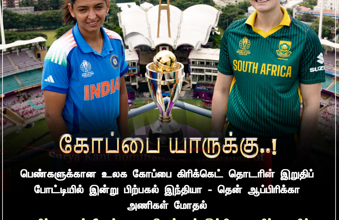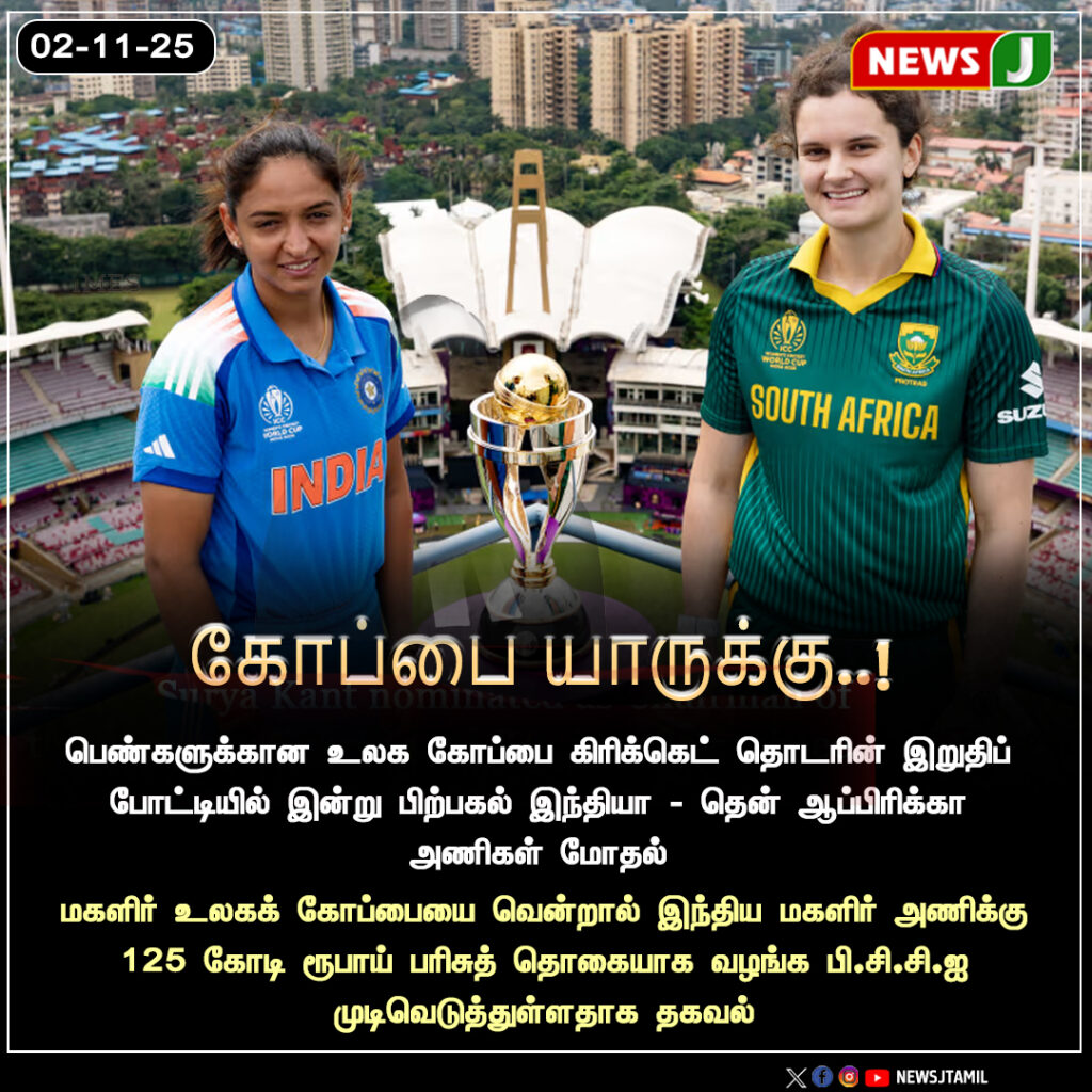 இன்று நடைபெறும் இந்தப் போட்டி மும்பையின் வான்கடே மைதானத்தில் மாலை 6.30 மணிக்கு தொடங்குகிறது. இந்திய அணி வென்றால் இது அவர்களின் முதல் மகளிர் உலகக் கோப்பை வெற்றியாகும். பவுண்டரி ஹிட்டர்கள் மற்றும் பந்துவீச்சு அணியின் திறமை ரசிகர்களிடையே பெரும் எதிர்பார்ப்பை ஏற்படுத்தியுள்ளது.