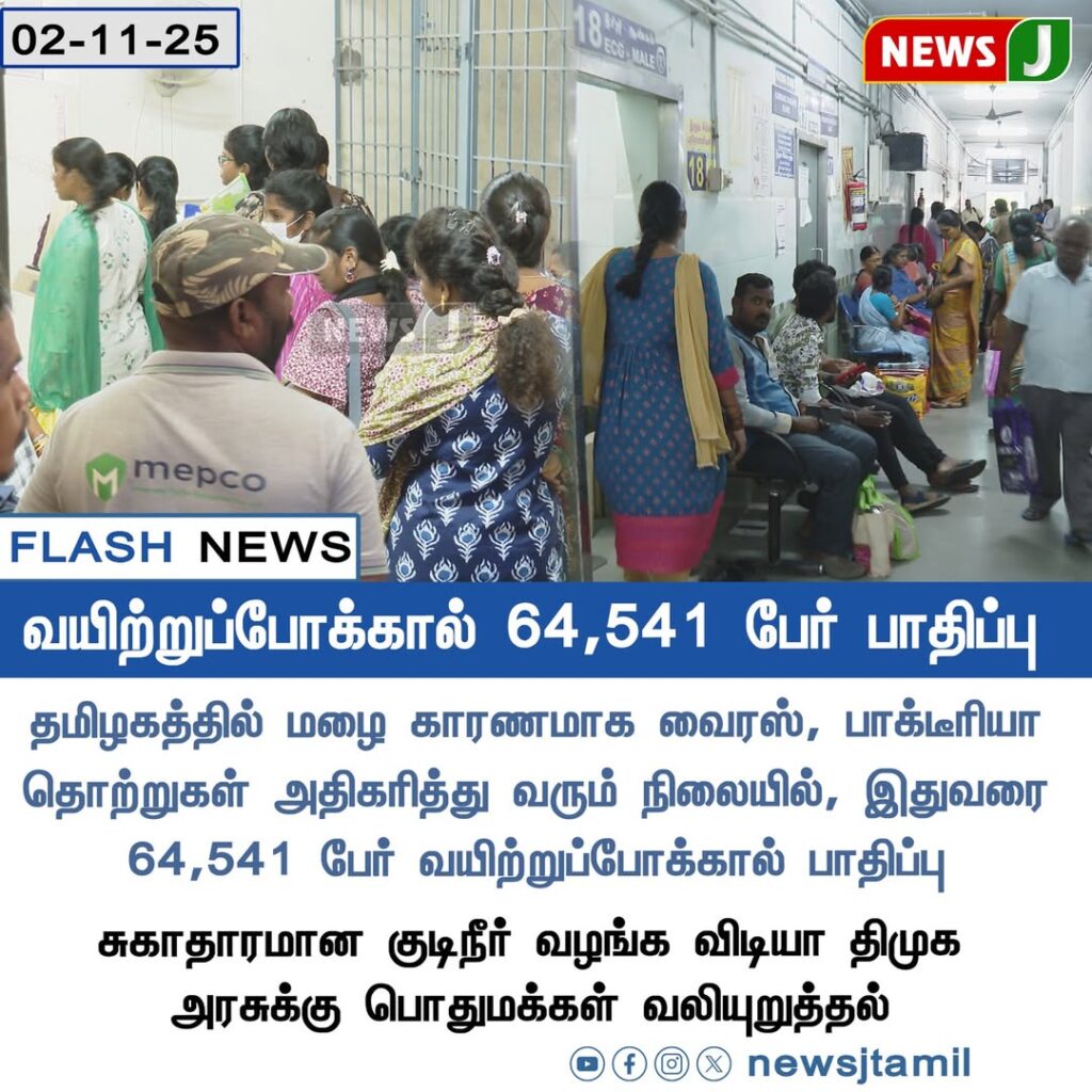 Increased rainfall has led to a surge in waterborne diseases across Tamil Nadu, with over 64,000 people reportedly affected by diarrhea. Health authorities have urged residents to maintain hygiene, consume boiled water, and seek medical attention at the earliest signs of infection.