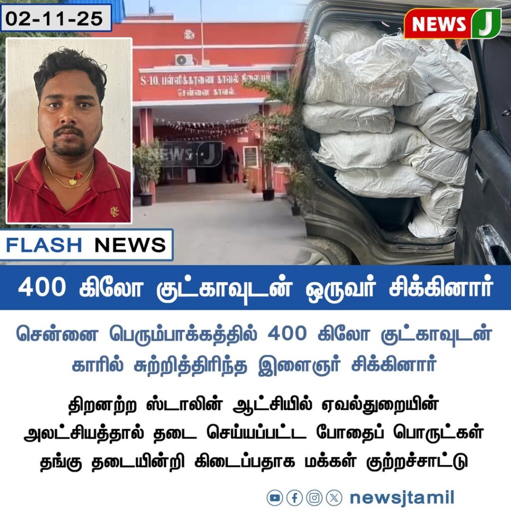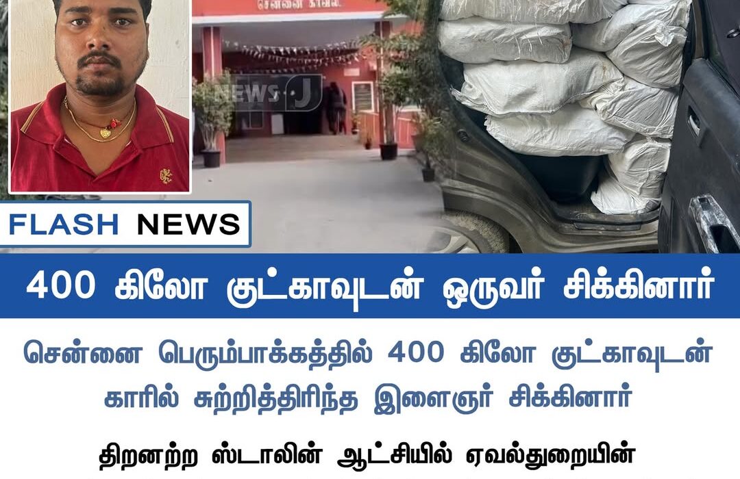 A man has been arrested in Perumbakkam, Chennai, for transporting 400 kg of banned gutkha in a car. Police say the substance was being smuggled for illegal sale. Residents have demanded stricter enforcement to curb the spread of banned tobacco products.