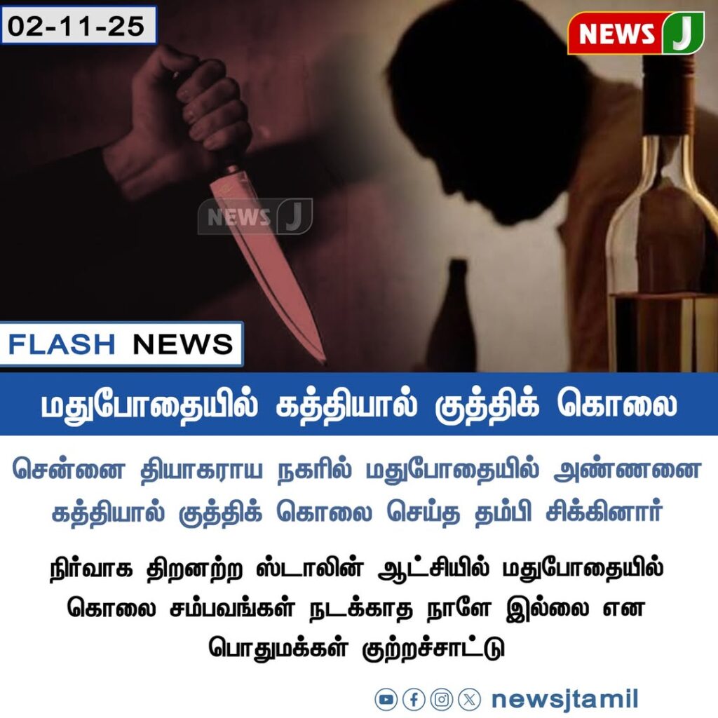 சென்னை தியாகராய நகர் பகுதியில் நடந்த சோகமான சம்பவத்தில், மதுபோதையில் ஏற்பட்ட வாக்குவாதத்தின் போது அண்ணனை கத்தியால் குத்தி கொன்ற சம்பவம் அதிர்ச்சியை ஏற்படுத்தியுள்ளது.