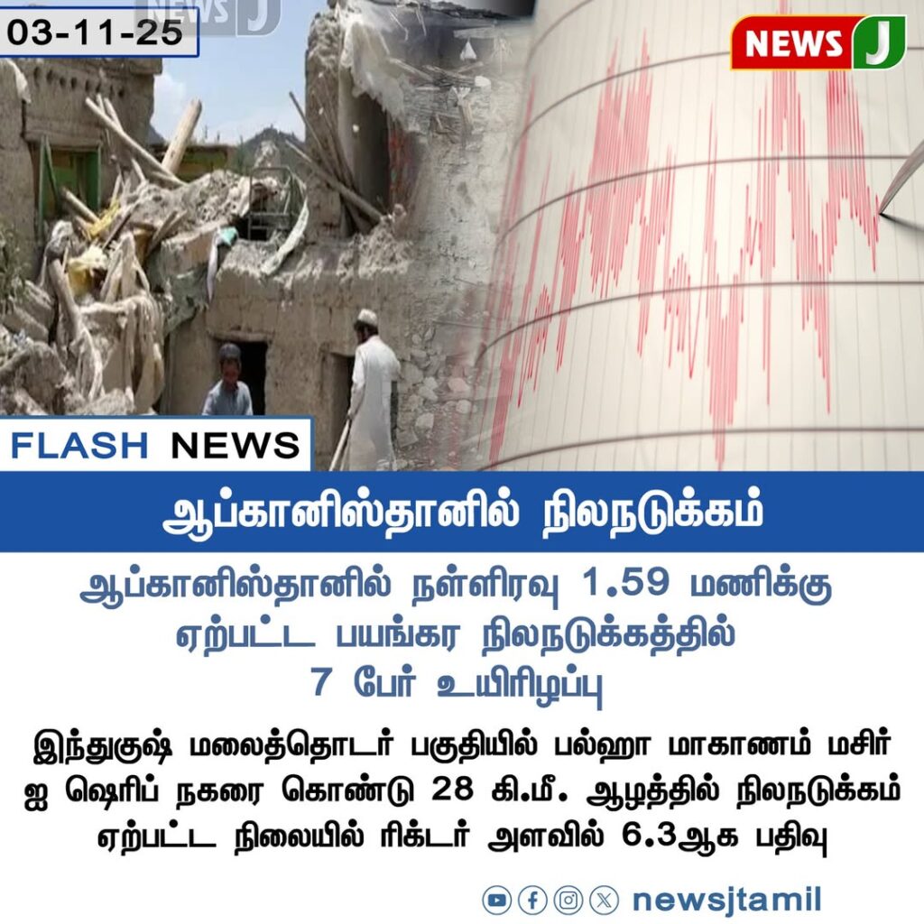 ஆப்கானிஸ்தானில் நள்ளிரவு 1.59 மணியளவில் ஏற்பட்ட பயங்கர நிலநடுக்கத்தில் குறைந்தது 7 பேர் உயிரிழந்துள்ளனர் | At least seven people were killed after a powerful earthquake struck Afghanistan at around 1:59 AM local time.