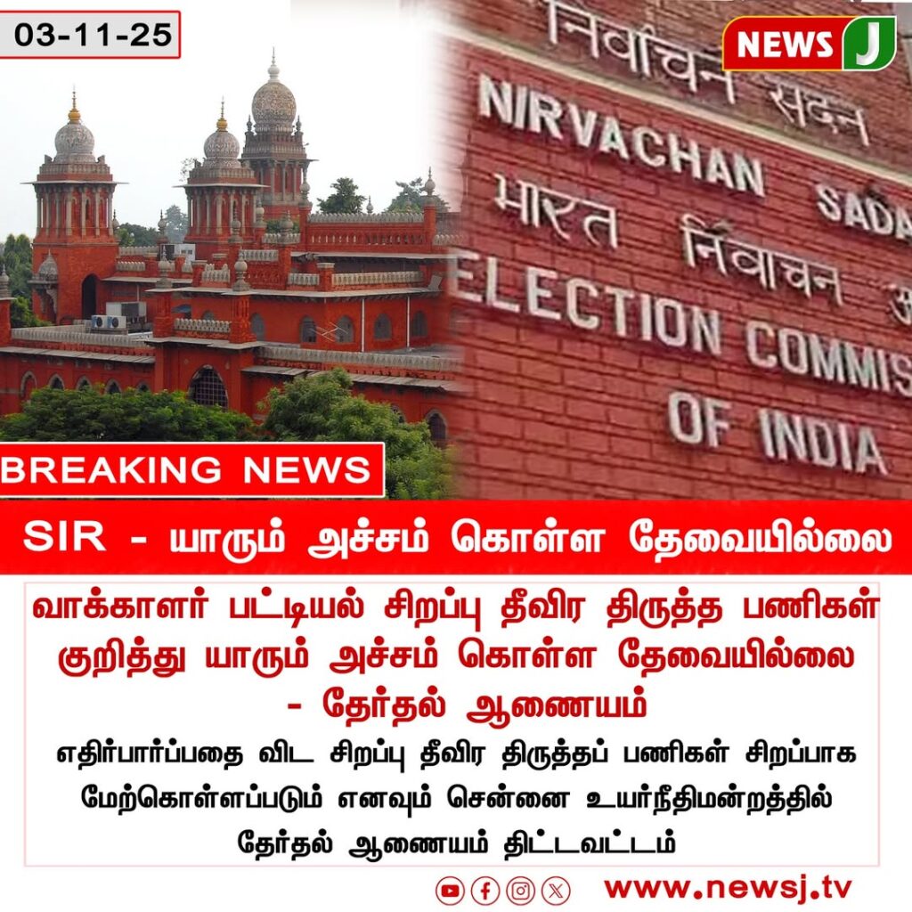 வாக்காளர் பட்டியல் சிறப்பு தீவிர திருத்தப் பணிகள் குறித்து யாரும் அச்சம் கொள்ள தேவையில்லை என தேர்தல் ஆணையம் தெரிவித்துள்ளது | The Election Commission has assured that there is no need for anyone to fear regarding the special voter list revision process.