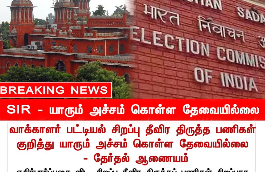சென்னை உயர்நீதிமன்றத்தில் நடைபெற்ற விசாரணையில், தேர்தல் ஆணையம் சார்பில் தாக்கல் செய்யப்பட்ட அறிக்கையில், “வாக்காளர் பட்டியலில் திருத்தம் செய்யும் பணிகள் வெளிப்படையாகவும் சட்டப்படி நடைபெறுகின்றன. எந்தவொரு அரசியல் சார்பும் இல்லாமல் பொதுமக்கள் நம்பிக்கையுடன் இதில் பங்கேற்கலாம்” என தெரிவிக்கப்பட்டுள்ளது.