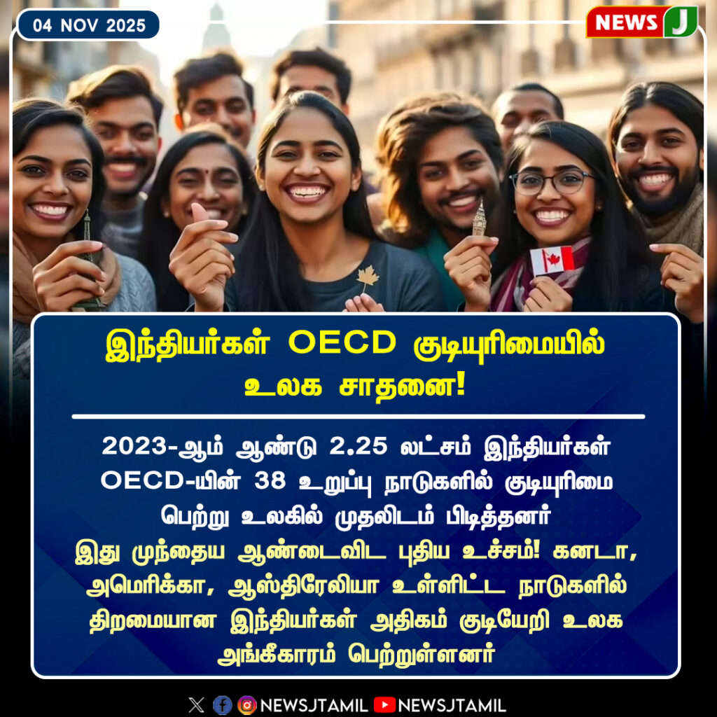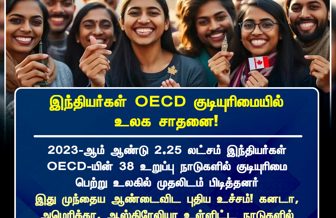 2023ஆம் ஆண்டில் மட்டும் 2.25 லட்சம் இந்தியர்கள் OECD-இன் 38 உறுப்பு நாடுகளில் குடியுரிமை பெற்றுள்ளனர் | In 2023 alone, over 2.25 lakh Indians obtained citizenship in one of the 38 OECD member countries, marking a global record.