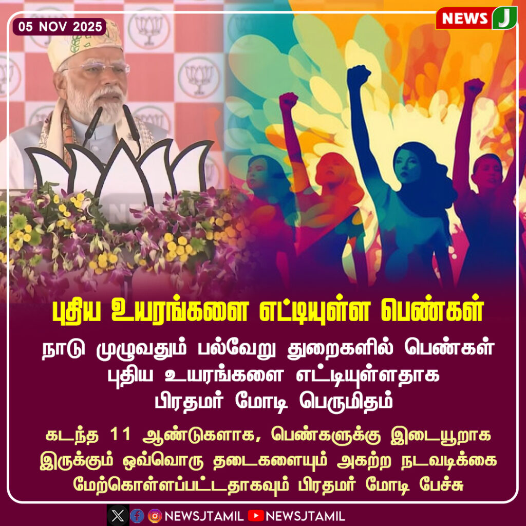 நாடு முழுவதும் பல்வேறு துறைகளில் பெண்கள் புதிய உயரங்களை எட்டியுள்ளதாக பிரதமர் மோடி தெரிவித்துள்ளார் | Across the nation, women have achieved remarkable progress in various fields, said Prime Minister Modi.