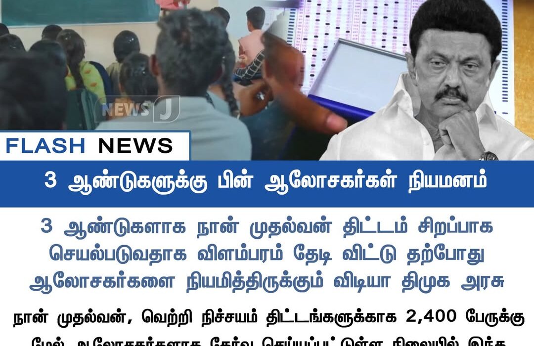 மூன்று ஆண்டுகளாக நான்முகத் திட்டம் சிறப்பாக செயல்படுவதற்காக விண்ணப்பம் கேட்டு வைத்திருந்த நிலையில், விடியாவின் தலைமையிலான அரசு 2,400 பேருக்கு மேல் ஆலோசகராக தேர்வு செய்து நியமித்துள்ளது. இது வெற்றி நிதிச் சபை திட்டங்களின் செயல்திறனை மேம்படுத்தும் வகையில் முக்கியமானதாகும்.