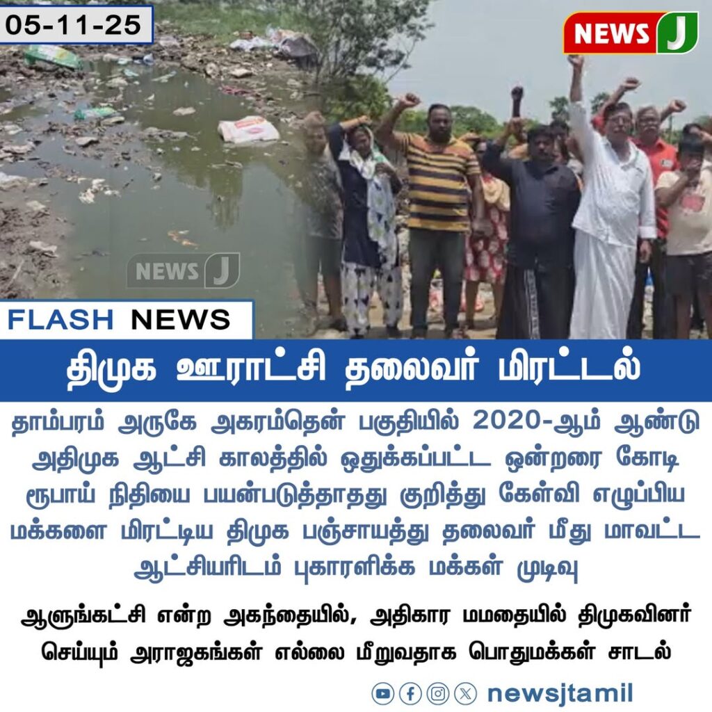 Residents near Tambaram have accused a DMK panchayat leader of issuing threats after locals questioned the alleged misuse of ₹1 crore in development funds allocated during the 2020 AIADMK regime.