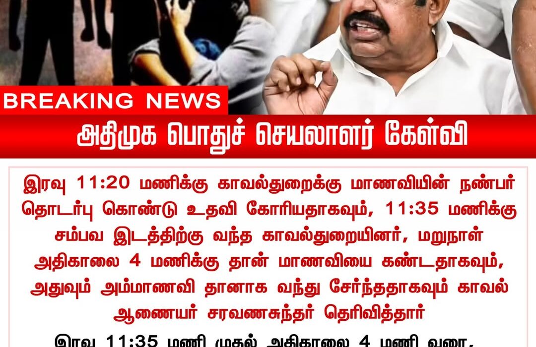 He demanded a full explanation from the authorities, questioning the 4-hour delay in police response. Palaniswami accused the DMK government of failing to ensure women’s safety and called for immediate accountability from the concerned officials.