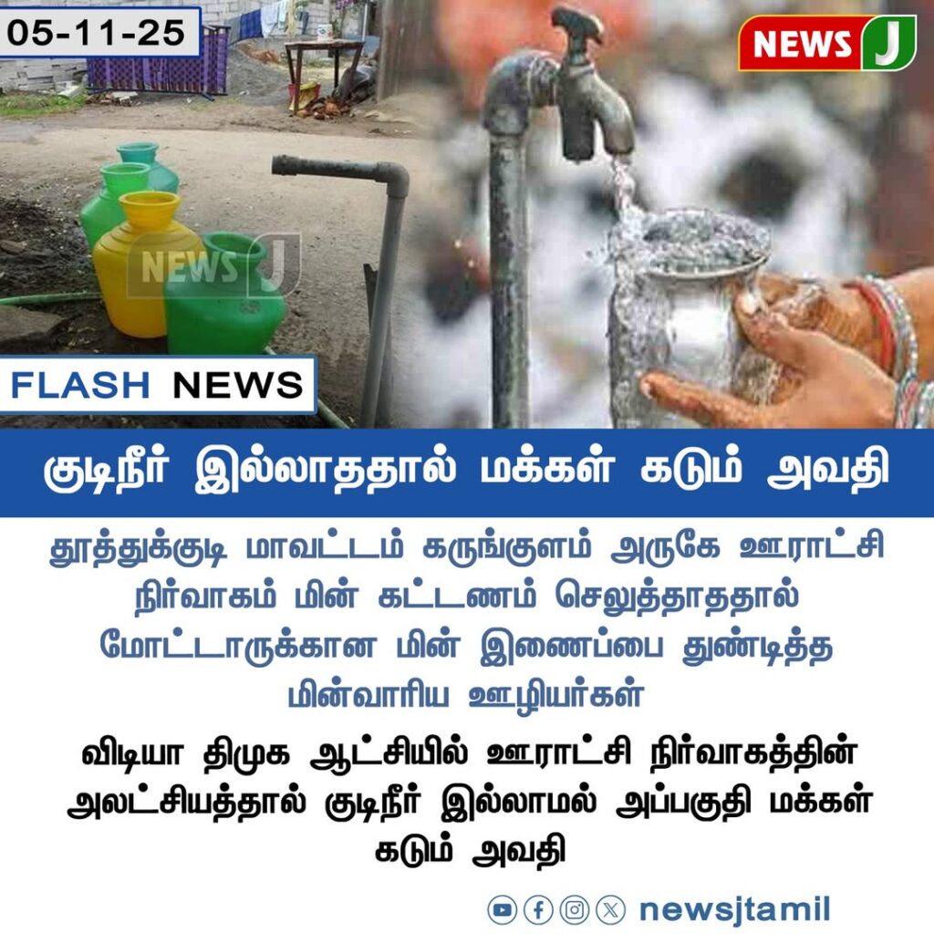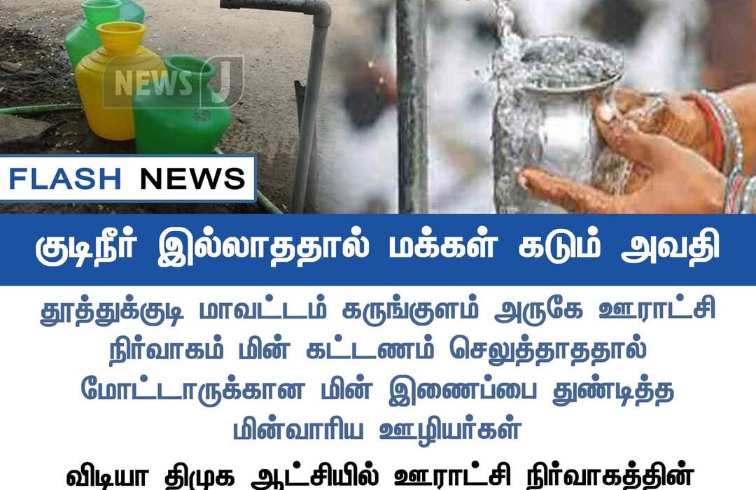 தூத்துக்குடி மாவட்டம் கருங்குளம் அருகே நீர்வாங்கம் தடைப்பட்டதால் மக்கள் கடும் அவதிக்குள்ளாகினர் | Residents near Karungulam in Thoothukudi district are facing acute hardship due to disruption in water supply.