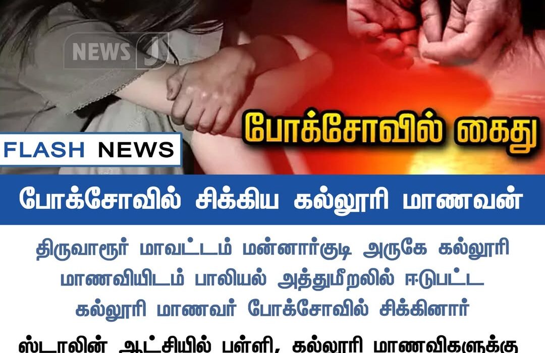 A college student from Mannargudi in Tiruvarur district has been arrested under the POCSO Act for allegedly sexually harassing a fellow student. Police detained the accused following a complaint filed by the victim’s parents.