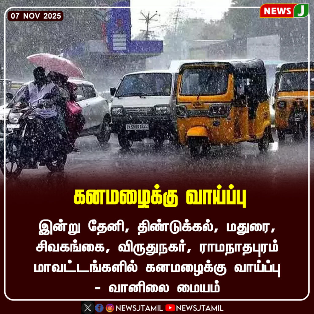 The Indian Meteorological Department (IMD) has forecast heavy rainfall across several southern districts of Tamil Nadu including Theni, Madurai, Dindigul, Sivagangai, Virudhunagar, and Ramanathapuram today.