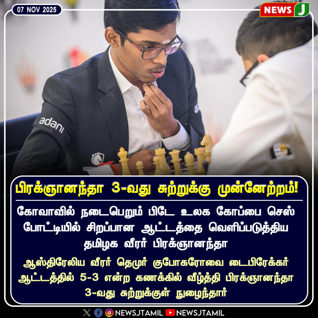 Indian chess star R. Praggnanandhaa has advanced to Round 3 of the FIDE World Cup Chess Tournament held in Goa after a thrilling 5–3 win over Australia’s Nermuk Gupogorov.