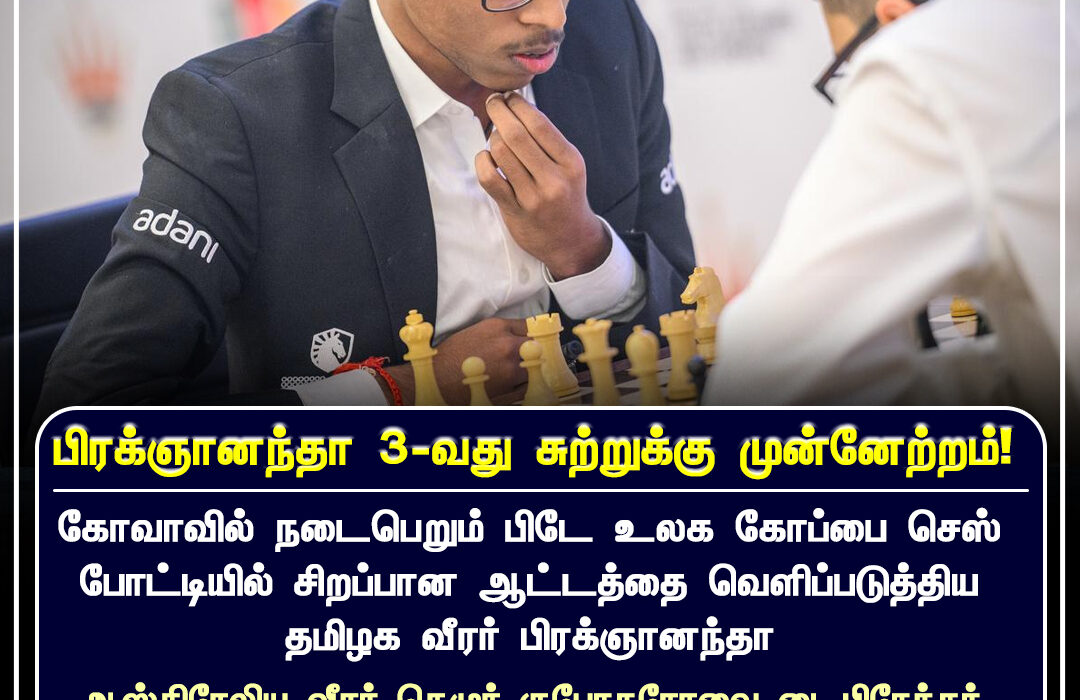கோவாவில் நடைபெறும் பிடே உலகக் கோப்பை சதுரங்க போட்டியில், சிறப்பான ஆட்டத்தை வெளிப்படுத்திய இந்திய இளம் சதுரங்க வீரர் பிரக்ஞானந்தா, 3-வது சுற்றுக்கு முன்னேற்றம் கண்டுள்ளார்.