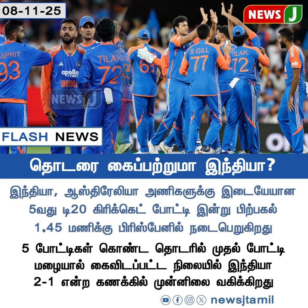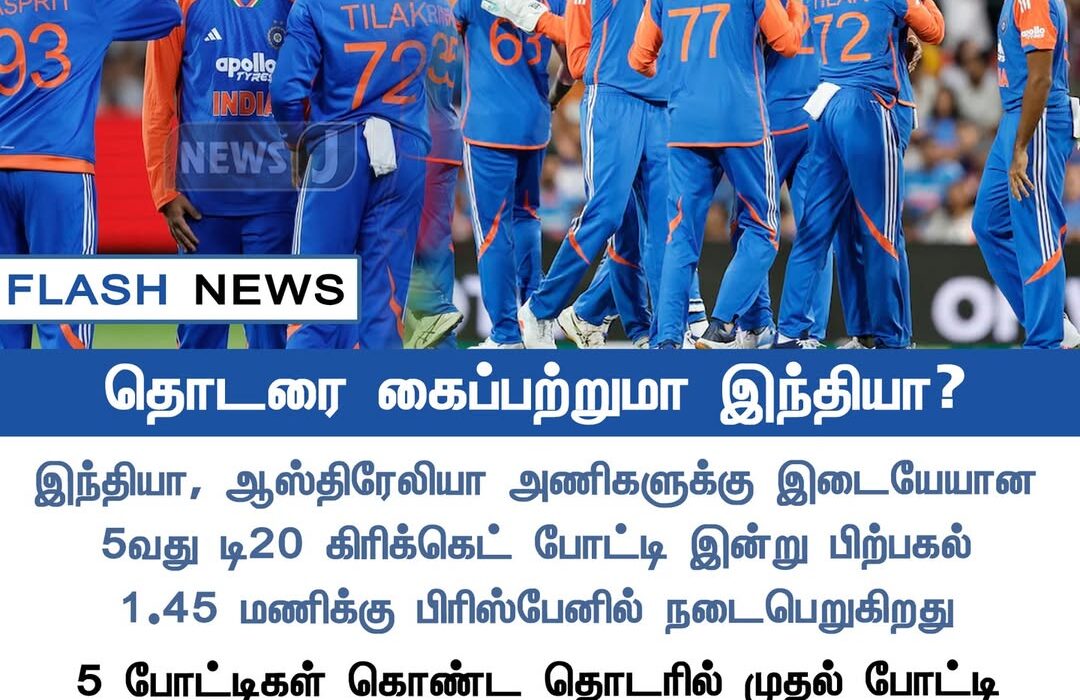 இந்தியா மற்றும் ஆஸ்திரேலியா அணிகளுக்கு இடையிலான 5வது மற்றும் கடைசி T20 போட்டி இன்று பிரிஸ்பேனில் இந்திய நேரப்படி பிற்பகல் 1.45 மணிக்கு நடைபெறுகிறது.
