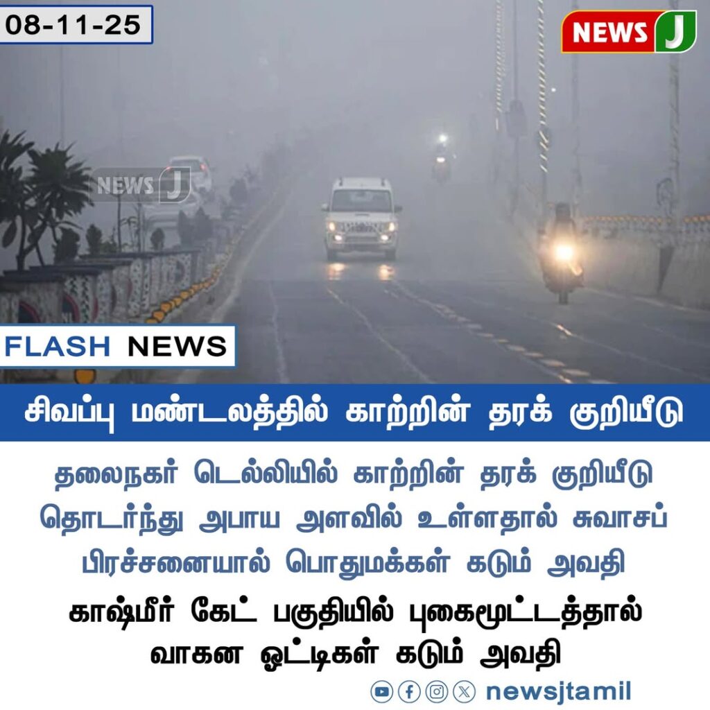 டெல்லியில் காற்று மாசு உச்சநிலையை எட்டியது | Visibility drops, people urged to stay indoors.