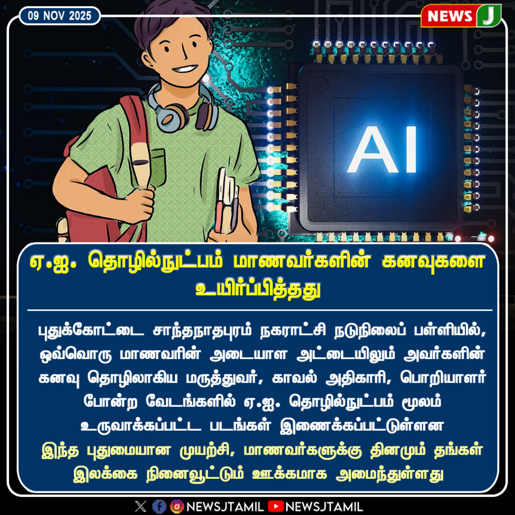 The AI Learning Program launched in Pudukkottai has sparked inspiration among students, allowing them to explore future careers through artificial intelligence-based lessons. Teachers say this initiative helps bridge digital learning with creativity, preparing students for next-generation technology careers.