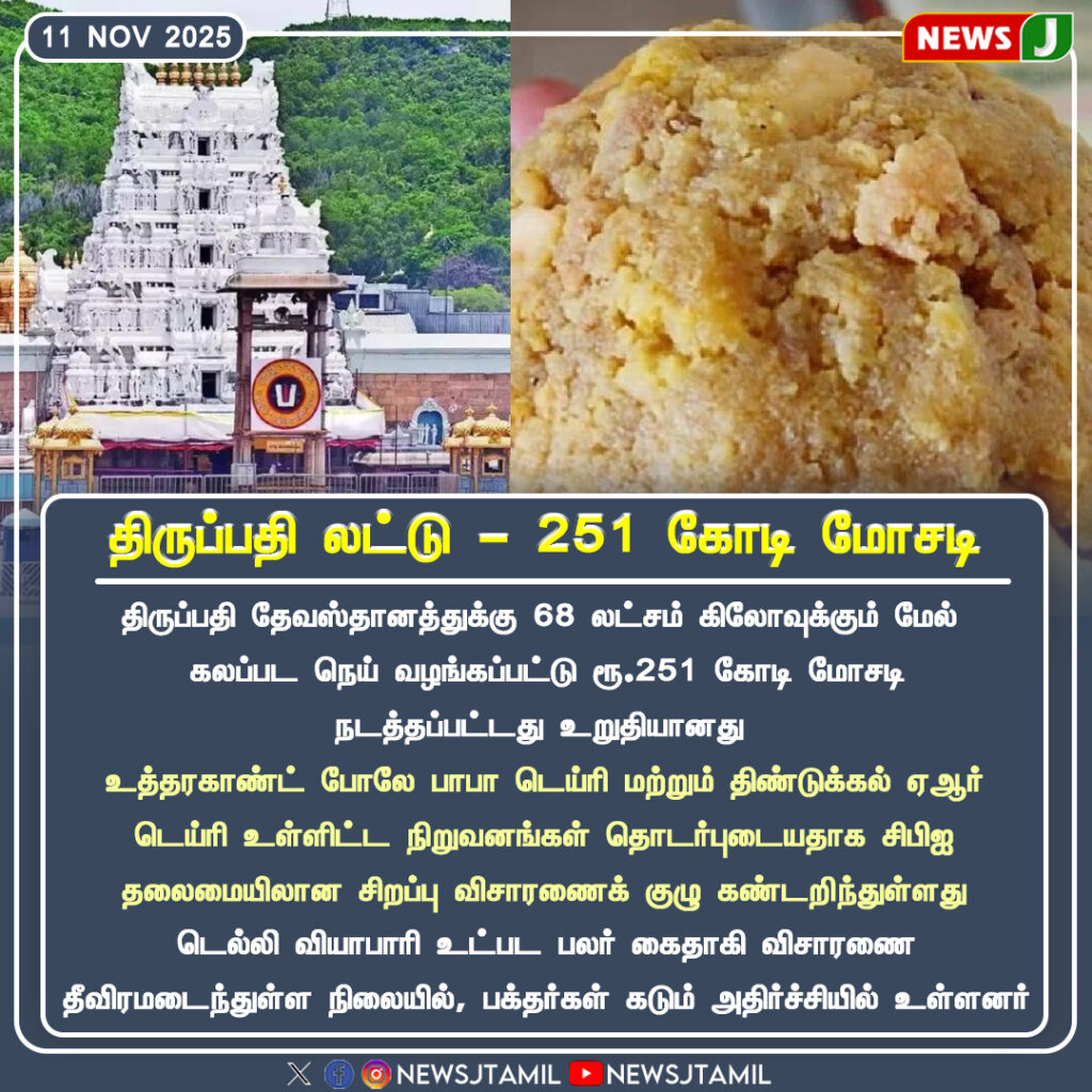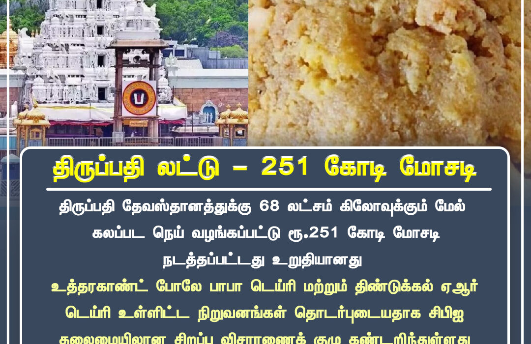 திருப்பதி தேவஸ்தானத்தில் 251 கோடி மதிப்பில் லட்டு மோசடி | ₹251-crore laddu scam unearthed at Tirupati temple.