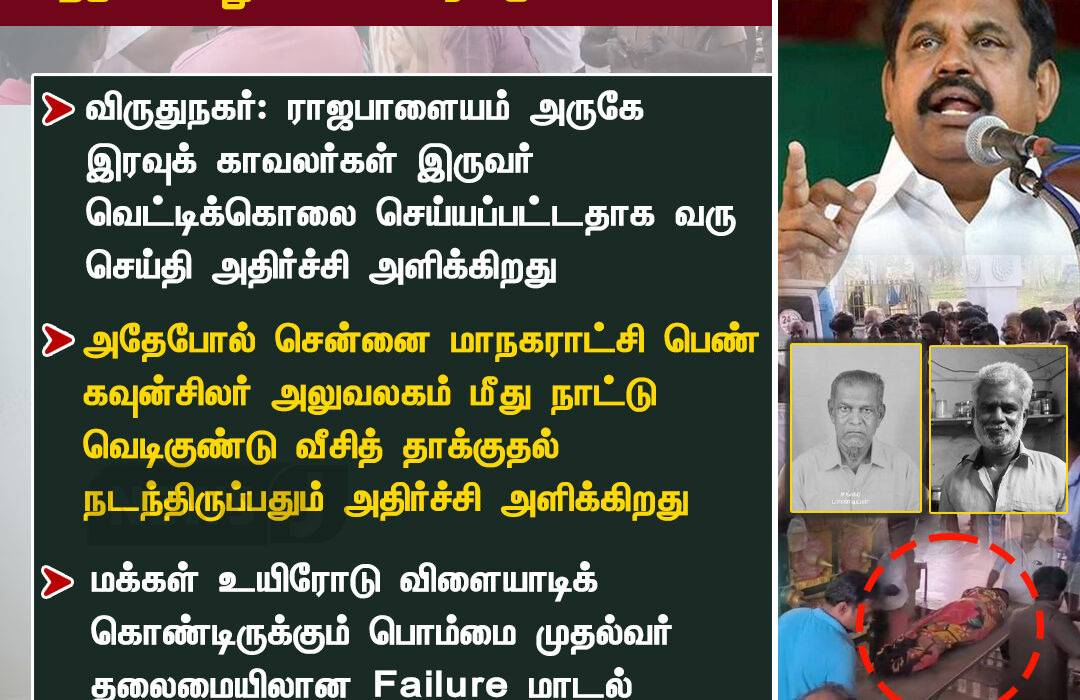 Palaniswami accused the ruling government of complete administrative failure, stating that the safety of citizens and public servants is at serious risk under the current regime.