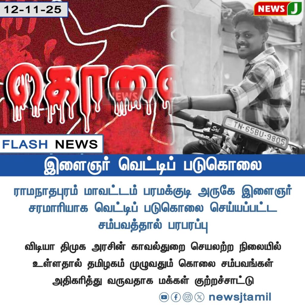 ராமநாதபுரம் மாவட்டம் பரமக்குடி அருகே ஒரு இளைஞர் சரமாரியாக வெட்டிக் கொலை செய்யப்பட்ட சம்பவம் அப்பகுதியை அதிர்ச்சியில் ஆழ்த்தியுள்ளது. ஆரம்ப தகவல்படி, முன்விரோதமே இந்த தாக்குதலுக்குக் காரணமாக இருக்கலாம் என கூறப்படுகிறது.