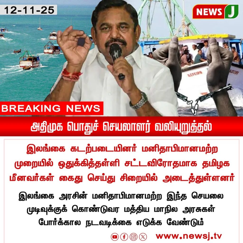 Condemning the incident, the AIADMK leader urged the Central Government to take immediate diplomatic action to secure the release and ensure the safety of Indian fishermen. He criticized the government’s slow response, stating it puts the lives of fishermen at serious risk.