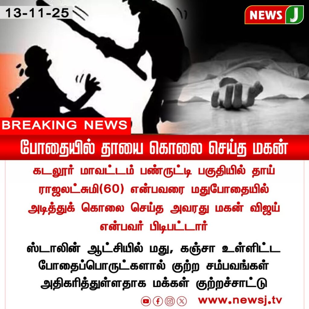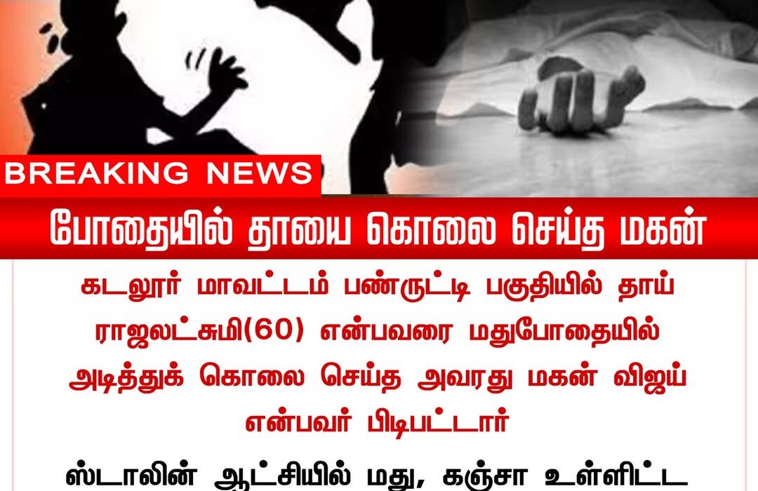In Cuddalore district, a tragic incident occurred when a 60-year-old woman was allegedly beaten to death by her son during a drunken altercation. Initial reports suggest that the quarrel escalated suddenly, leading to the fatal attack.