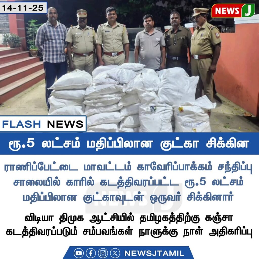 இந்த சம்பவம் விஷயா திமுக ஆட்சியில் தமிழகத்திற்கு கஞ்சா, குட்கா உள்ளிட்ட தடைவச்துக்கள் மீண்டும் வருவதாக மக்கள் குற்றச்சாட்டை எழுப்பியுள்ளன.