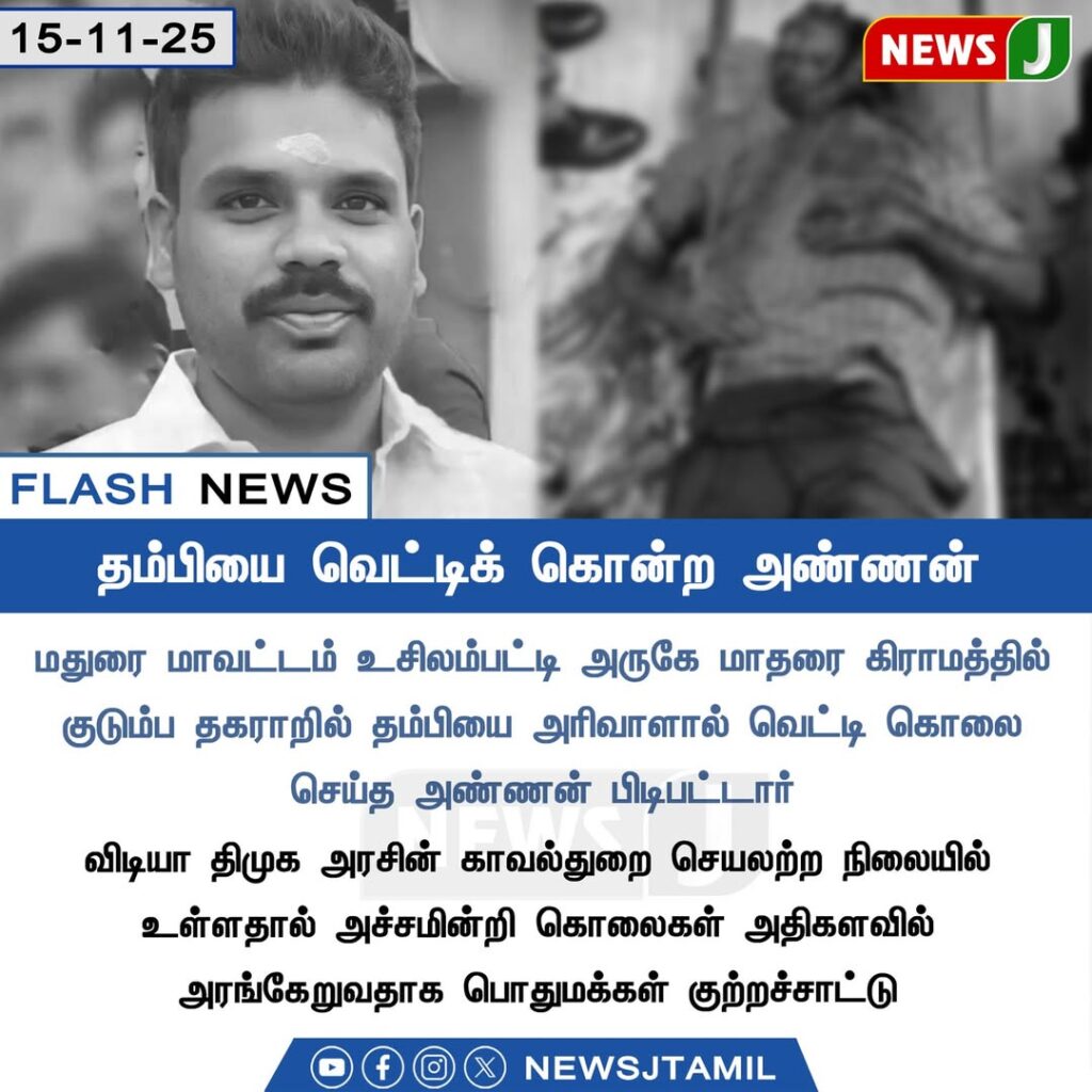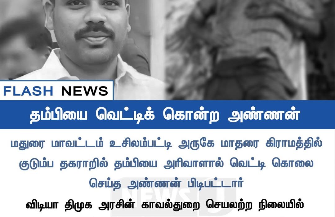 மதுரை மாவட்டம் உசிலம்பட்டி அருகே மாதரை கிராமத்தில் ஏற்பட்ட குடும்ப தகராறில் தமிழ் என்ற இளைஞரை அவரது அண்ணன் வெட்டிக்கொலை செய்த சம்பவம் பரபரப்பை ஏற்படுத்தியுள்ளது.