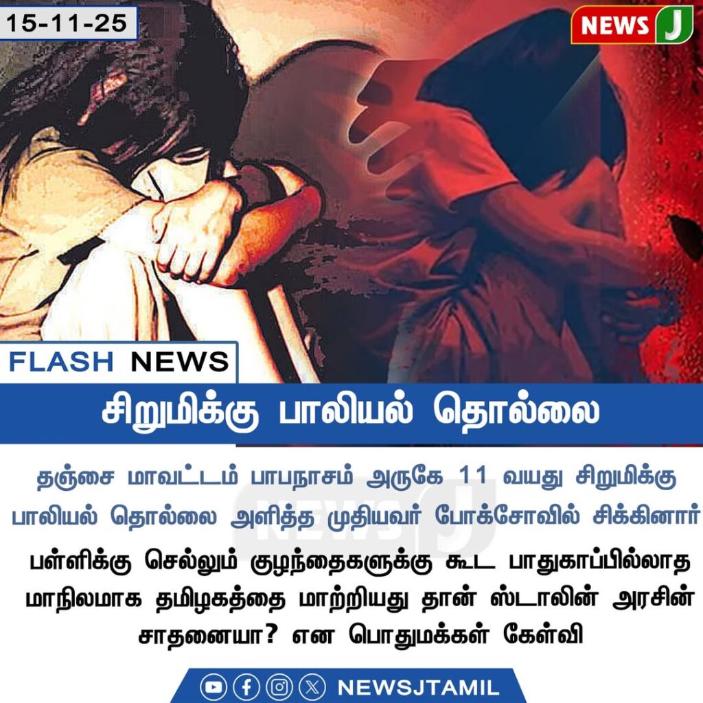 An 11-year-old girl from the Papanasam area in Thanjavur district has reportedly faced sexual harassment, causing widespread shock and public outrage. Based on the family’s complaint, police have taken an elderly man into custody for investigation.