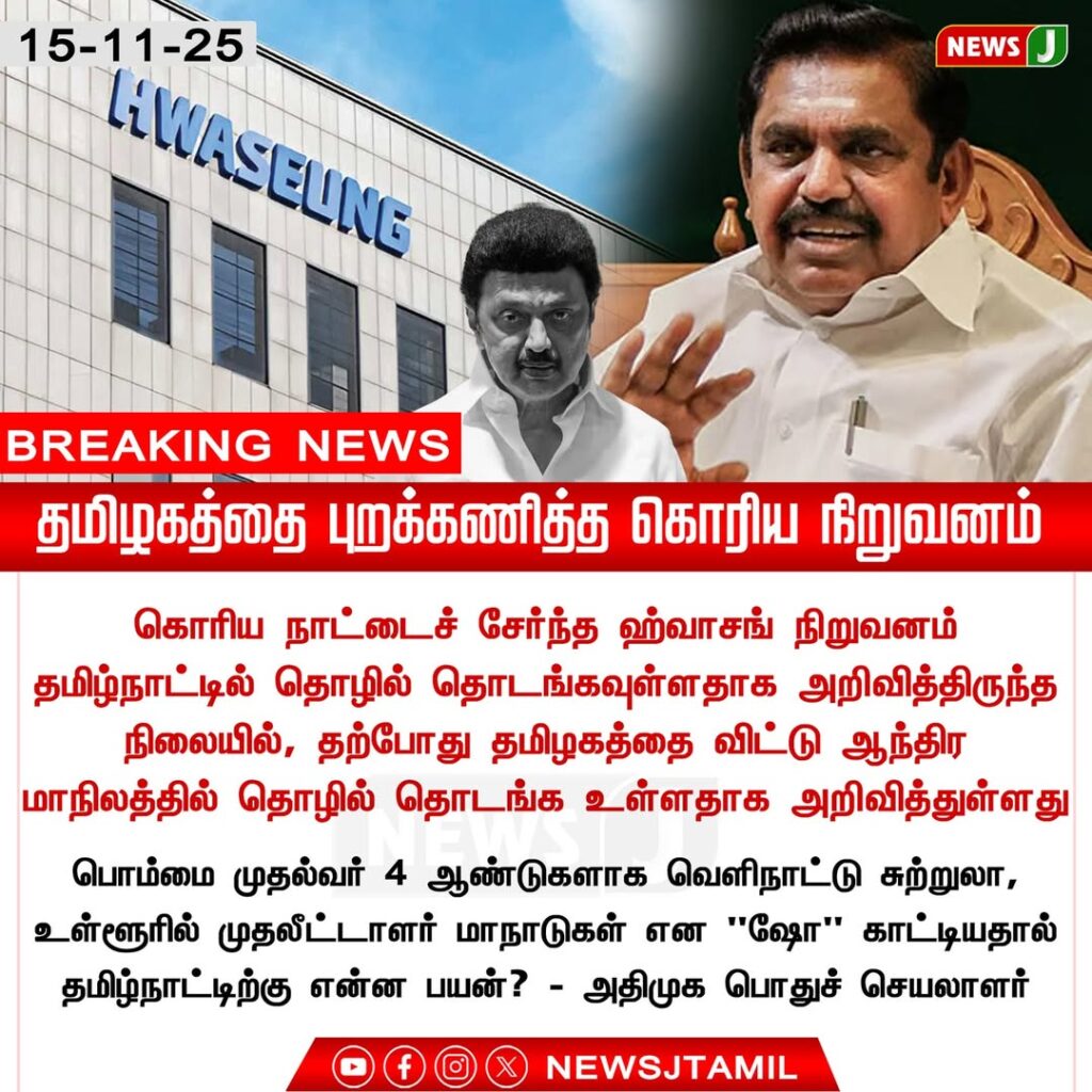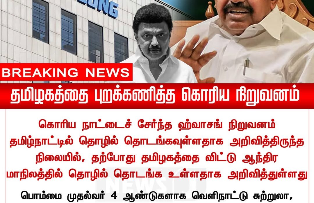Reports suggest that a Korean company that had earlier shown interest in setting up operations in Tamil Nadu has now shifted its investment plans to another state. This decision has sparked significant political conversation within the region.