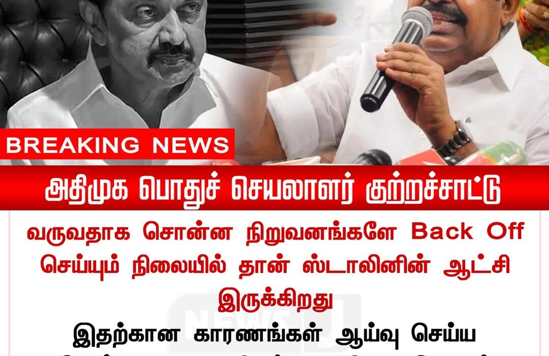 AIADMK general secretary K. Palaniswami has accused the Tamil Nadu government of being responsible for companies backing off from proposed investments. He claimed that the current administration’s policies have discouraged industries at a time when investment is crucial for growth.