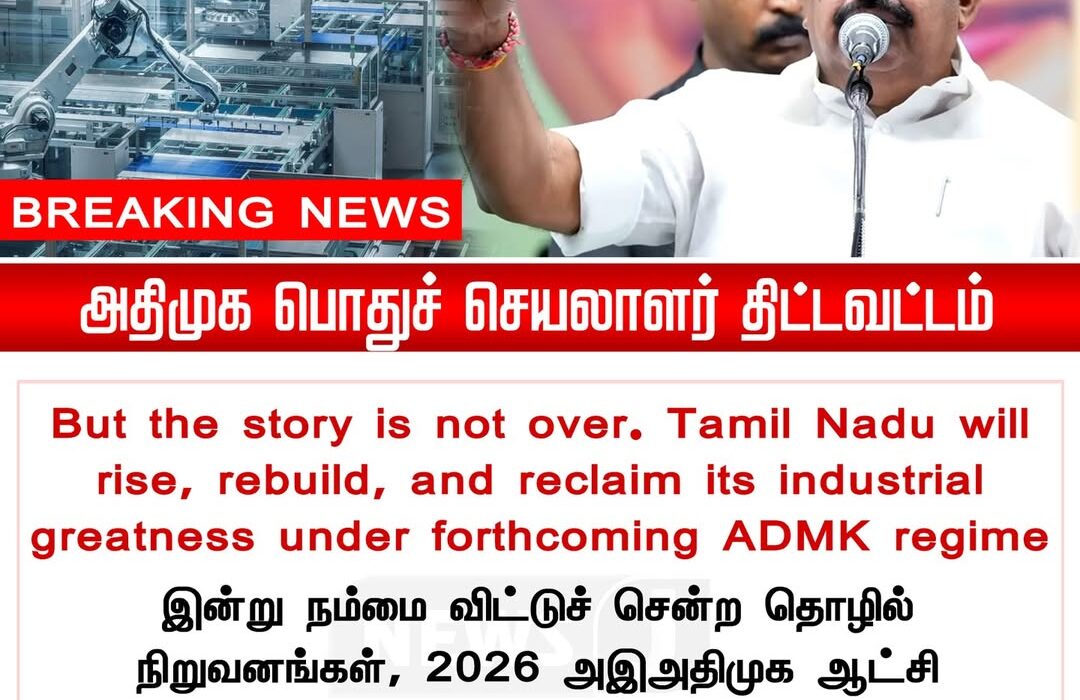 ADMK general secretary has stated that the party will revive and strengthen Tamil Nadu’s industrial growth if voted to power in 2026. He emphasized that industries leaving the state today will return under an ADMK-led administration.