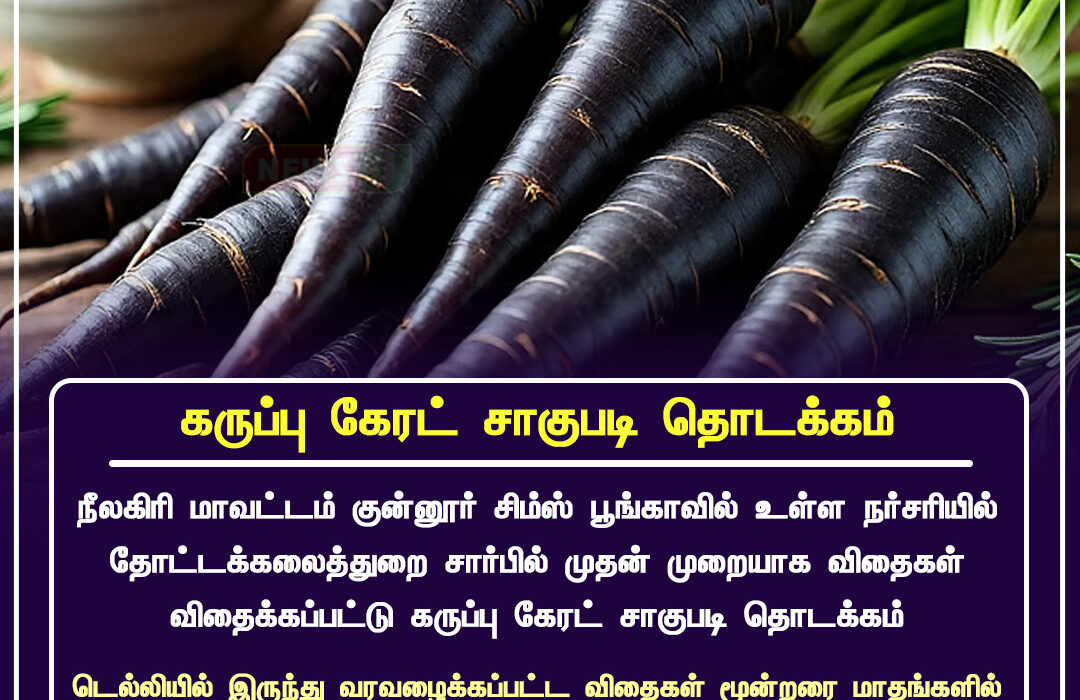 Black carrot cultivation has officially begun in the Coonoor Sims Park nursery in the Nilgiris district, marking a first-of-its-kind commercial trial by the horticulture department. Trials from seed sowing to harvest have shown promising results, officials said.