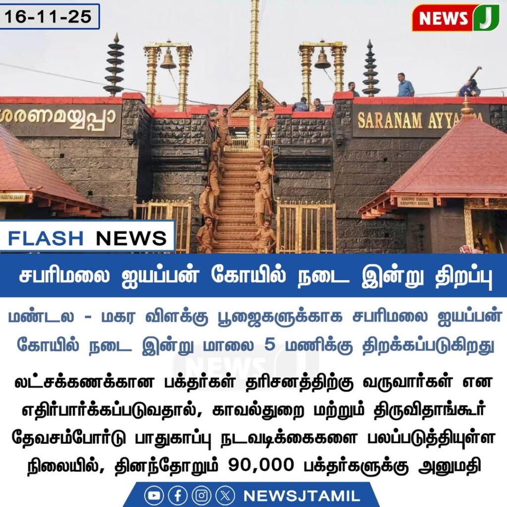 சபரிமலை ஐயப்பன் கோயிலின் மண்டல பூஜை காலத்தை முன்னிட்டு இன்று மாலை 5 மணிக்கு அதிகாரப்பூர்வமாக நடை திறக்கப்படுகிறது. ஆண்டுதோறும் நடைபெறும் இந்த புனித யாத்திரைக்காக நாடு முழுவதும் இருந்து வரும் லட்சக்கணக்கான பக்தர்கள் சபரிமலைக்கு திரள ஆரம்பித்துள்ளனர்.